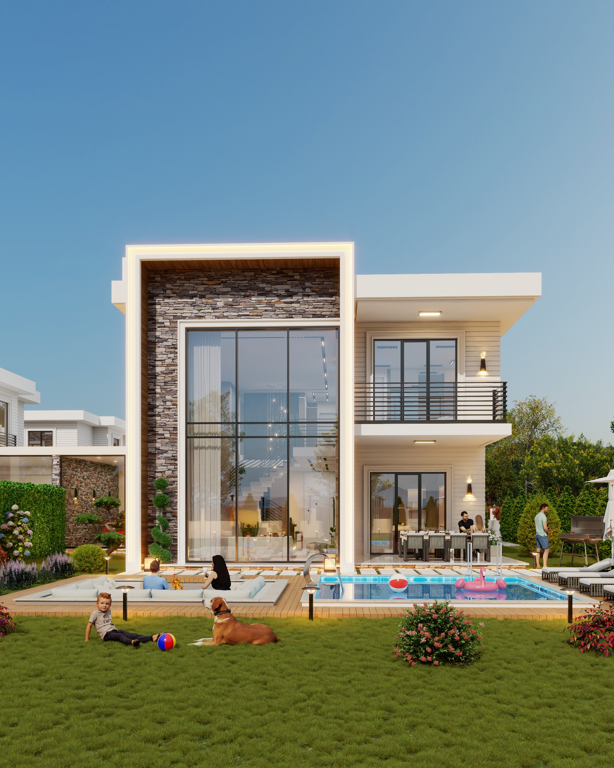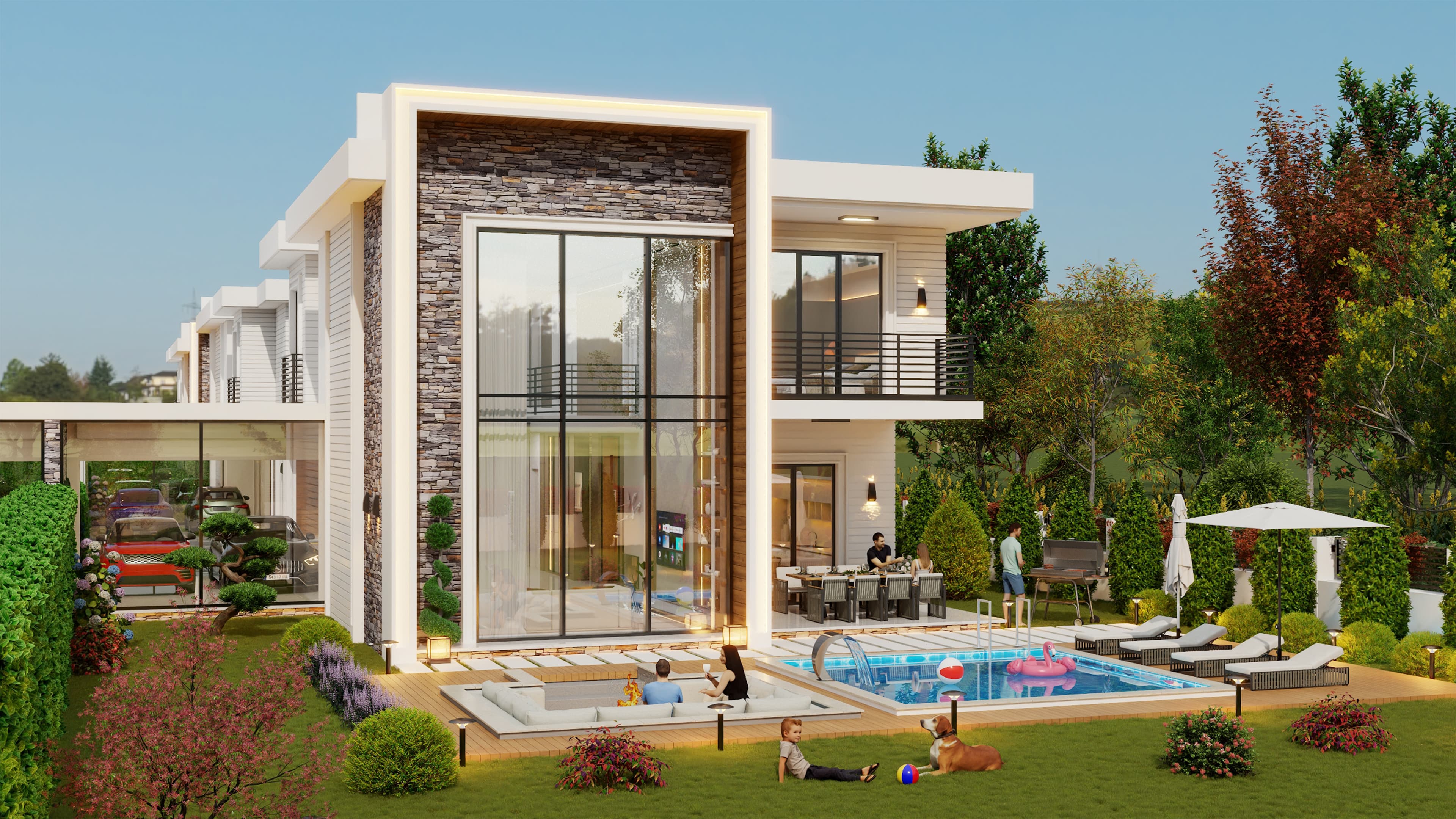 Çevredeki mimariyle uyum içinde tasarlanan lüks ve zarif detaylar; her aile için en yüksek konforu, modern yaşamı ve ideal yaşam koşullarını bir araya getiriyor.