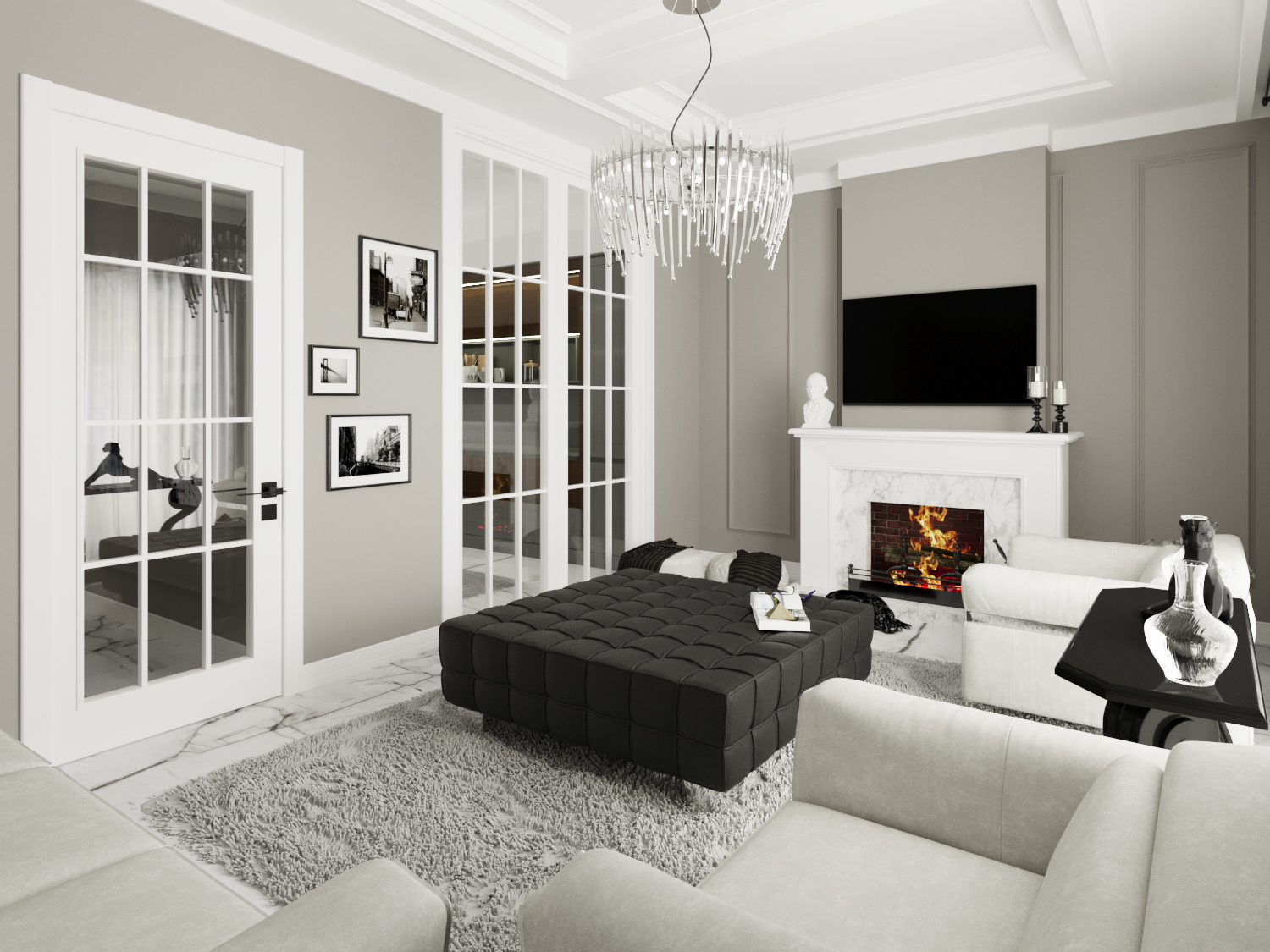 Villa iç mekanları; ferah planlama, fonksiyonel kullanım ve zamansız tasarım anlayışıyla oluşturulmuştur.