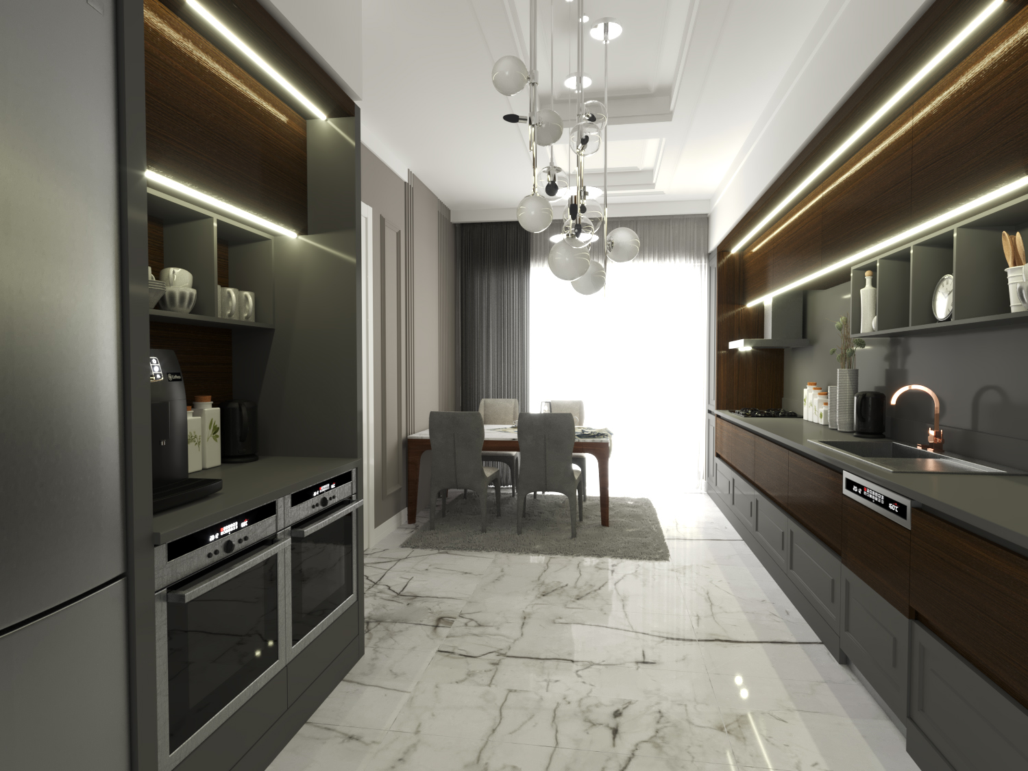 Fonksiyonellik ve estetiğin buluştuğu mutfak alanı, günlük kullanımda maksimum konfor sunar.
