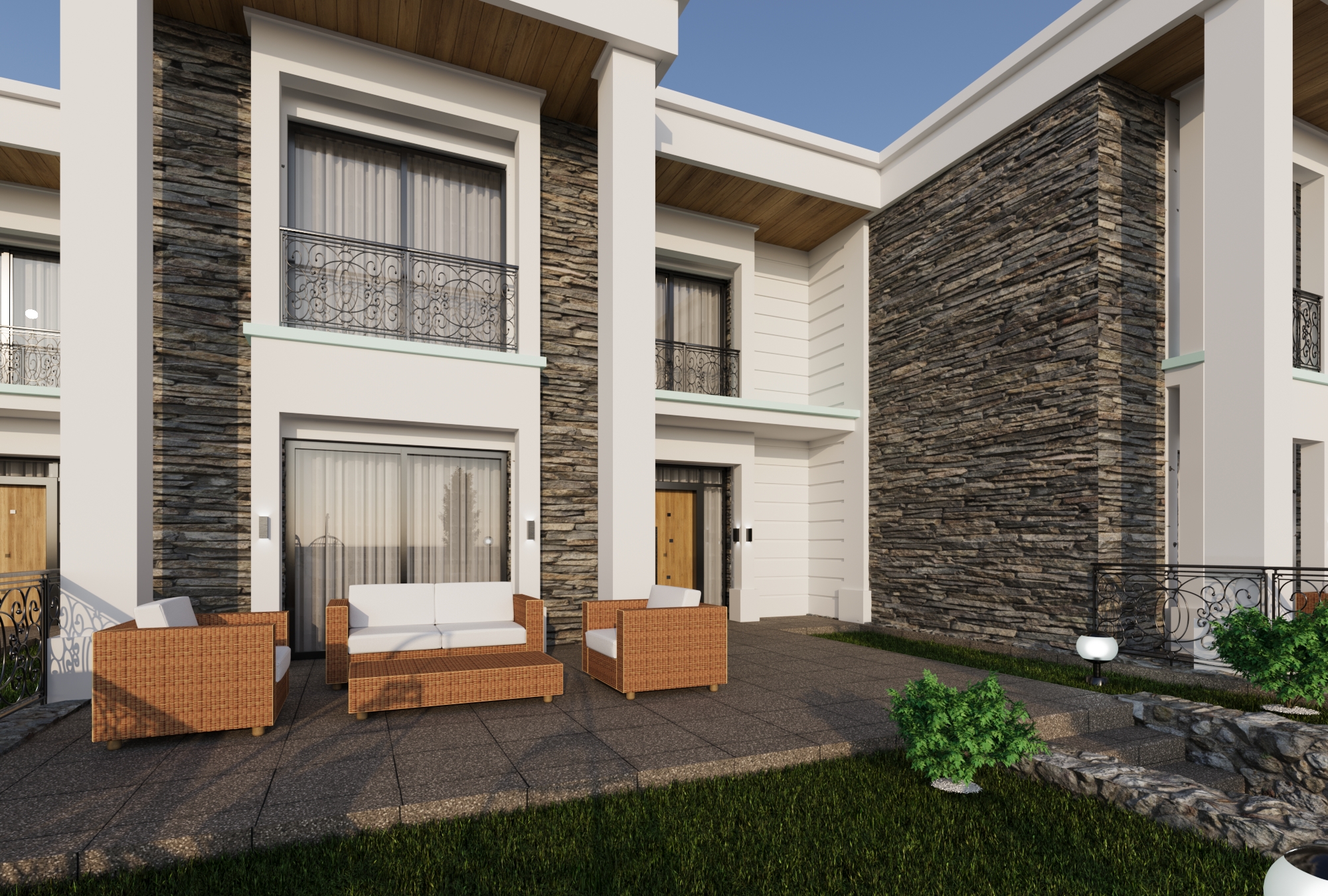 Villa dış cephesi, enerji verimliliği ve estetik görünüm odaklı olarak planlanmıştır.